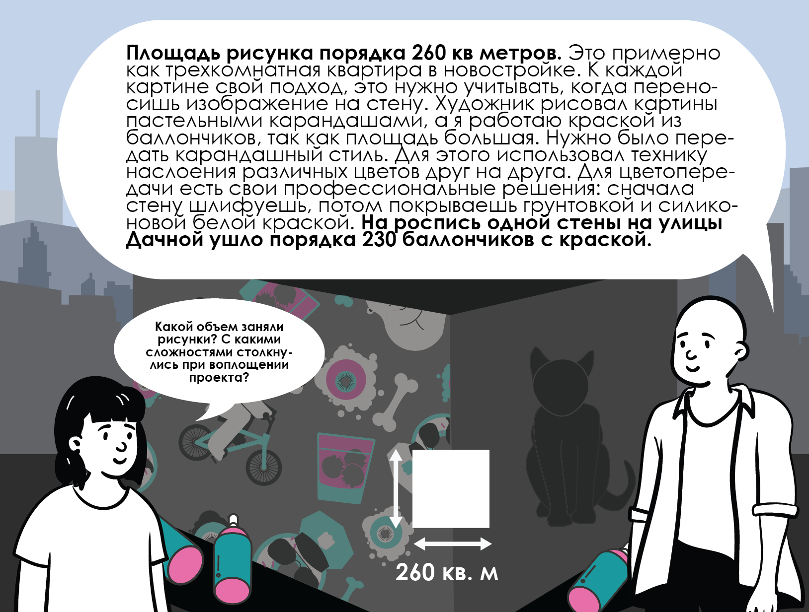 Я не был участником этих событий, но я сам часто бегаю мимо стены. Когда видел эту большую стену, то проходил мимо. Потом, когда я увидел волонтеров, которые её раскрашивают, а потом, когда увидел законченное решение, а потом когда появились еще и рисунки там осенью. Это было очень ярко, очень красиво, для меня, как для жителя города очень приятная история.