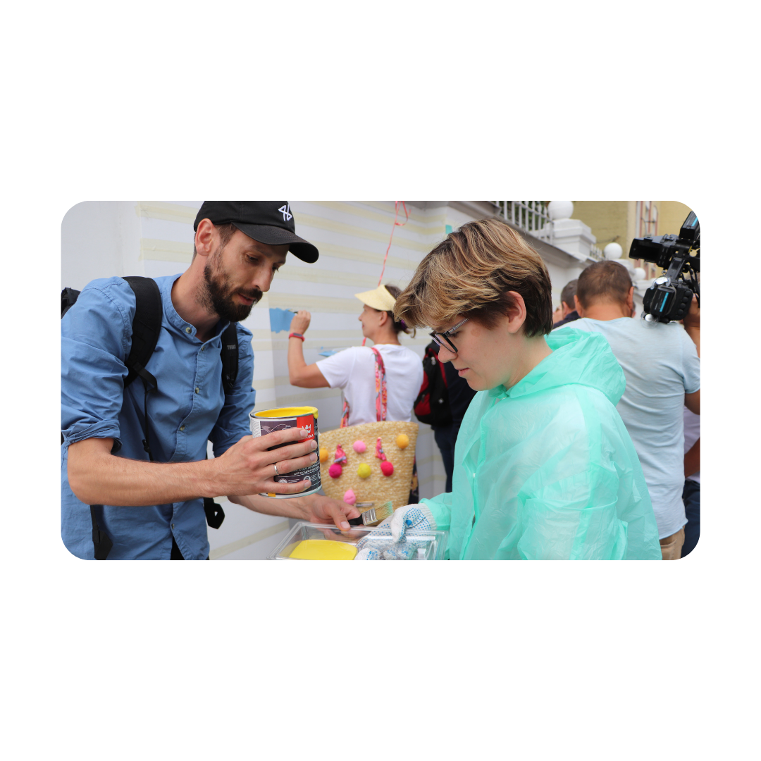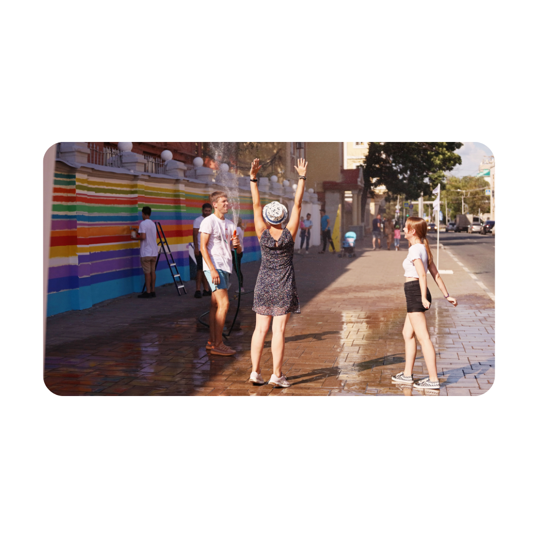 В дни проведения фестиваля «ВолгаФест» около 1,5 тысяч жителей и гостей города стали волонтерами проекта, приняв участие непосредственно в раскраске стены.