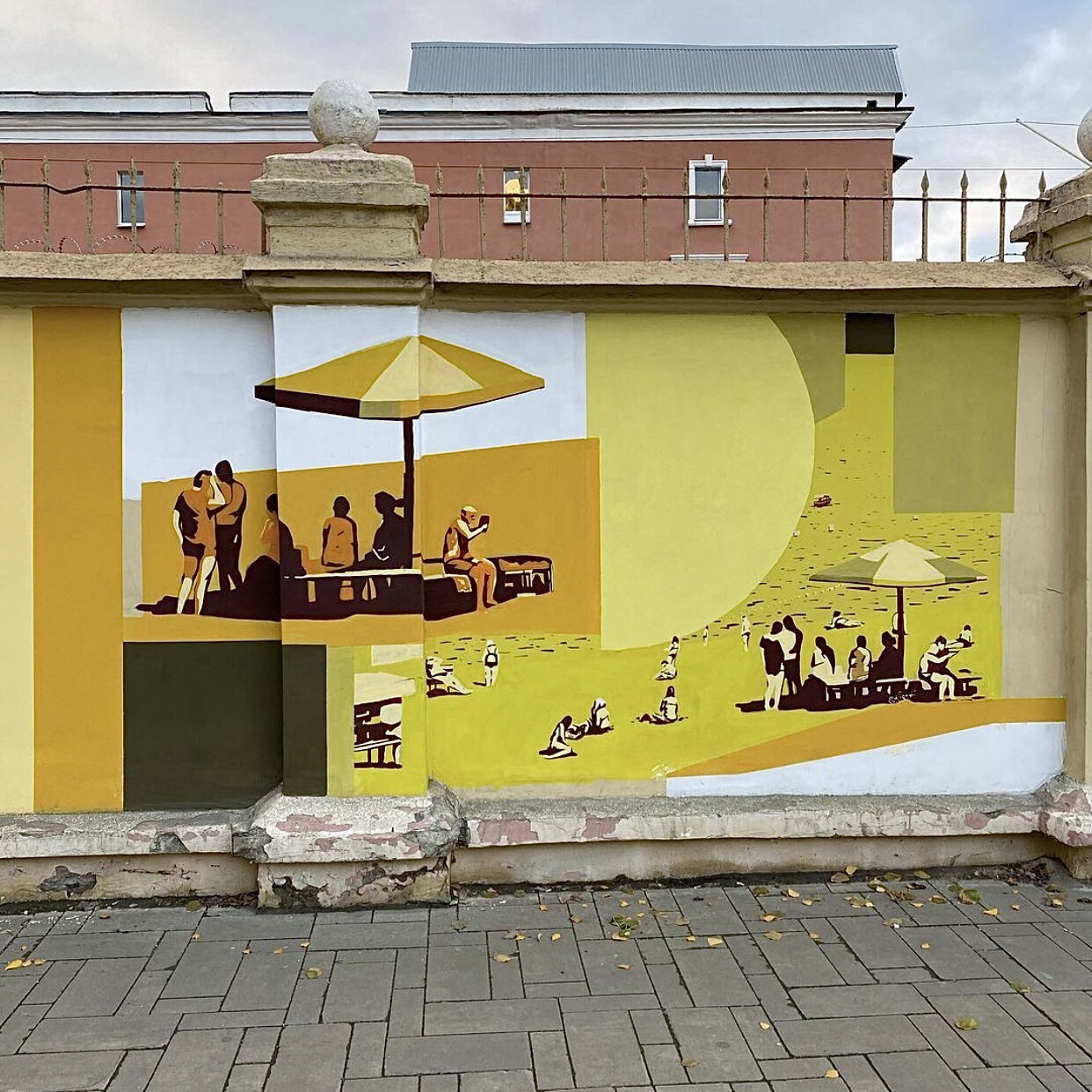 Мы переживали, что нас могут неправильно понять. Ведь изначально задумывали создать арт-объект как попытку договориться с горожанами, в какой цвет покрасить забор. Позже я внес в композицию элементы фигуратива - пляжные зонтики, кораблики, домики, чтобы сместить фокус восприятия у тех, кто сомневается.